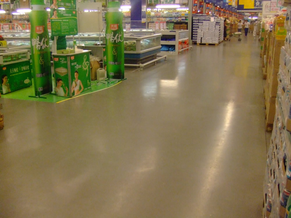 1、澆筑混凝土在其初凝時(shí),將金剛砂骨料均勻撒布在其表面,并用抹光機(jī)抹平地面;